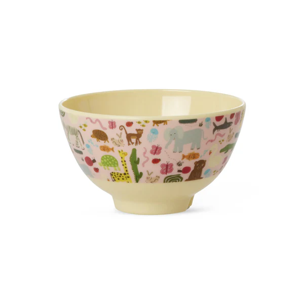 קערת מלמין מצויירת קטנה – חבורת חיות ורוד