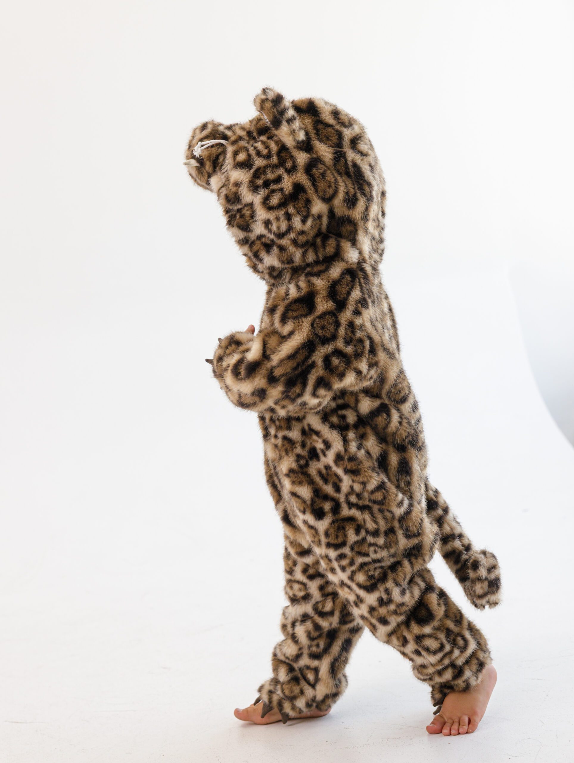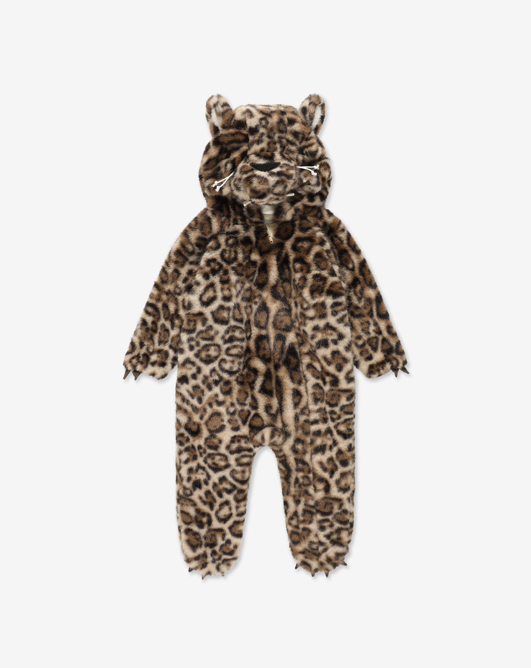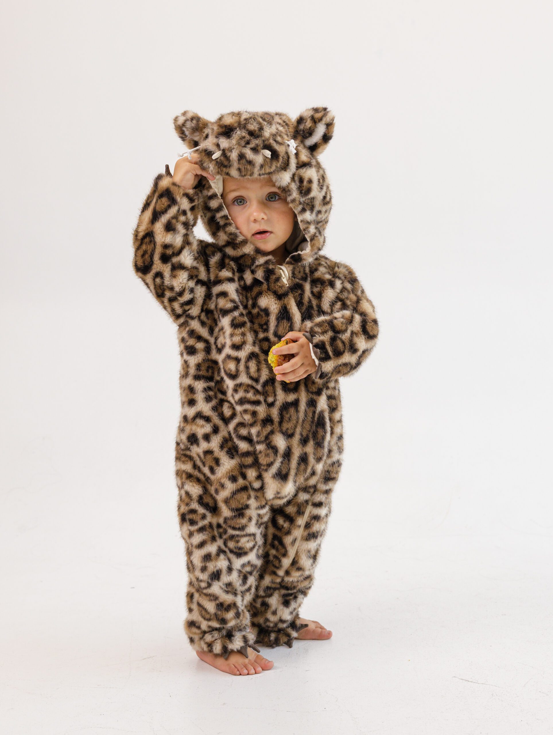 תחפושת נמר לתינוקת כוללת: אוברול מנומר מבד קטיפה עם אוזניים וזנב.