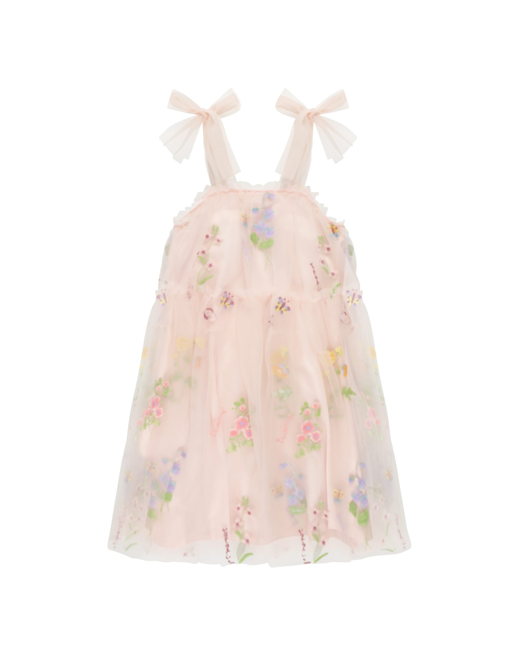 שמלת כתפיות תחרה ורודה בעיצוב פרחים.