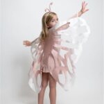 שמלה ורודה עם כנפיים מובנות בשמלה וקשת פרפר.