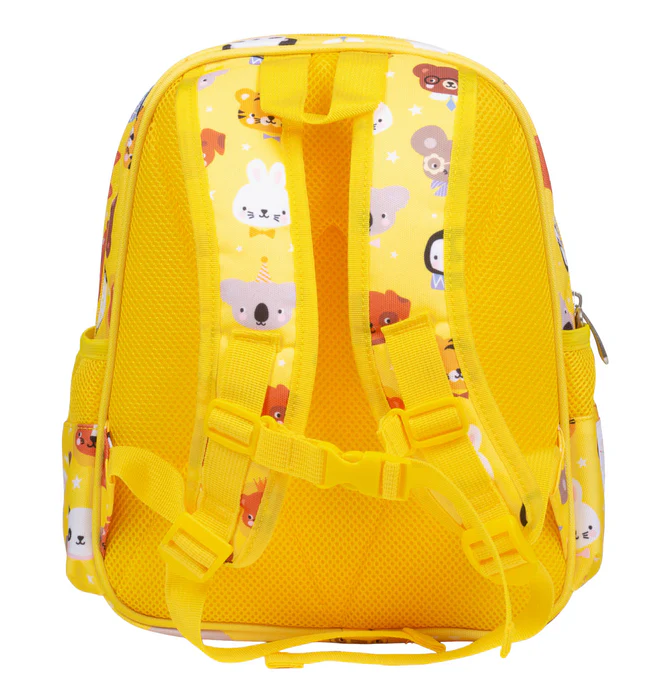 תיק גן גדול בצבע ירוק עם איור של חיות.