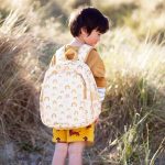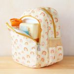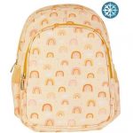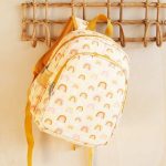 תיק גן גדול בצבע כתמתם עם איור של קשת בענן