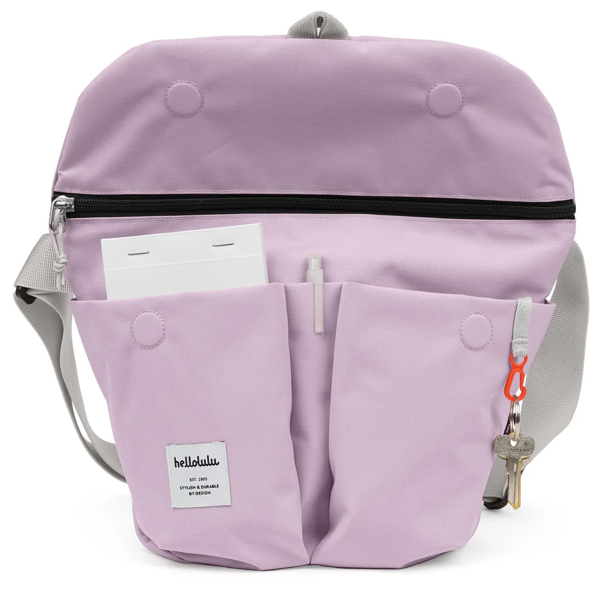 התיק בעל צורה ייחודית ובעל נפח המאפשר אחסון קומפקטי ונוח. לתיק תא ראשי עם רוכסן וסגירות מגנטיות, כיסים קדמיים עם תפס מיוחדת למפתחות וכיס פנימי הנסגר באמצעות רוכסן.