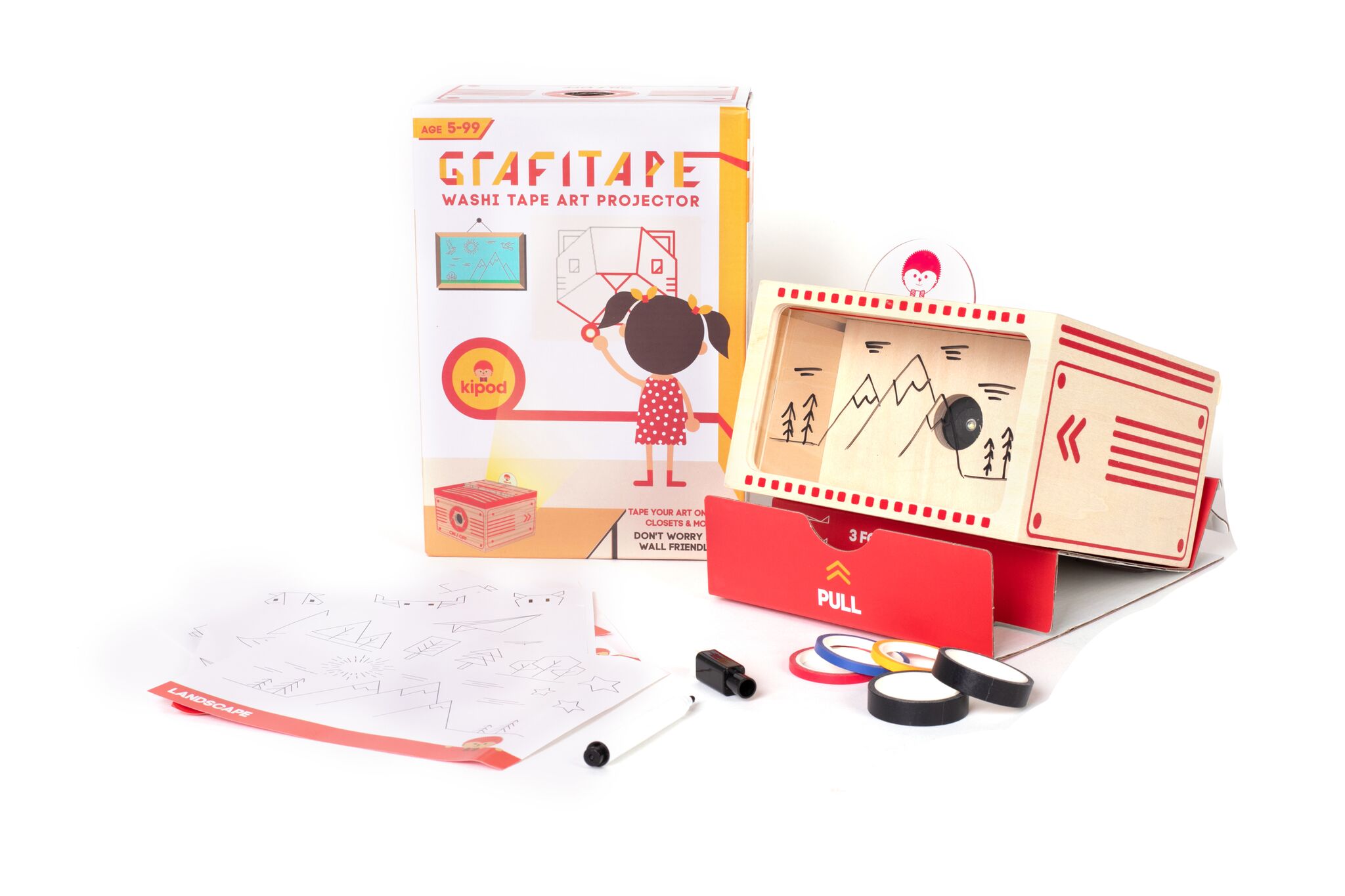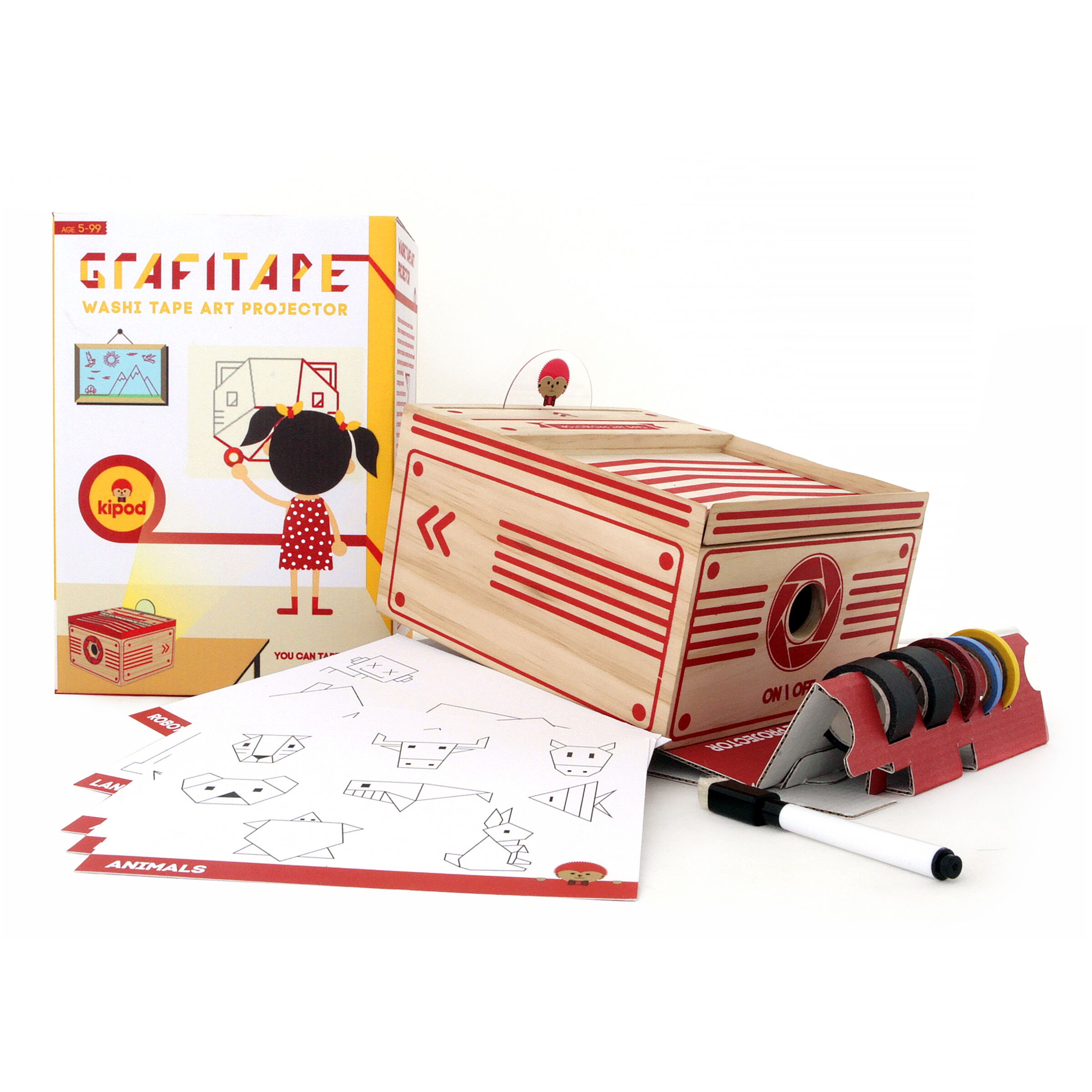 מקרן עץ מיוחד המאפשר לילדים לעשות אומנות על קירות, דלתות, חלונות ועוד, בעזרת וושי טייפ.